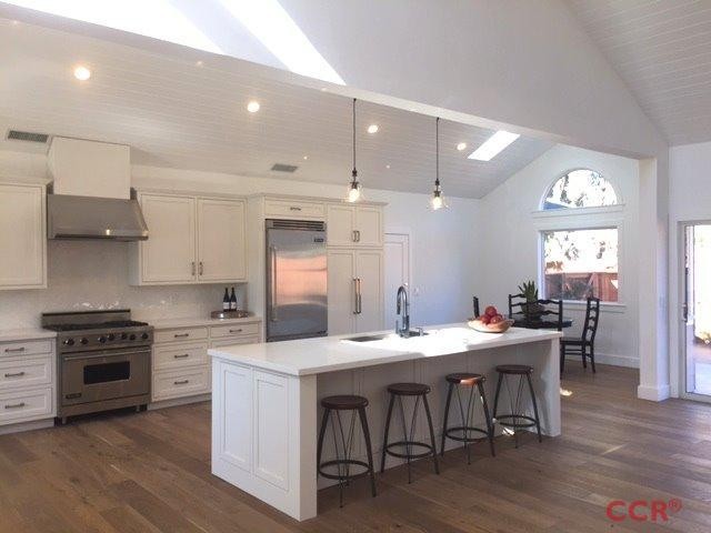 Charming Santa Ynez home behind a white picket fence. Entire house remodel just completed with high end finishes throughout. Gorgeous open floor plan with high ceilings, hardwood floors, fireplace, white marble kitchen and baths, and Viking appliances. This spacious 4 bedroom air conditioned home is approximately 2,700 sq. ft. and offers 4 bedrooms plus an office / den. One large bedroom is an upstairs loft with everything else on ground level. Covered front porch, 2 car garage with laundry room & separate storage room, new fencing & landscape. This is a must see property.